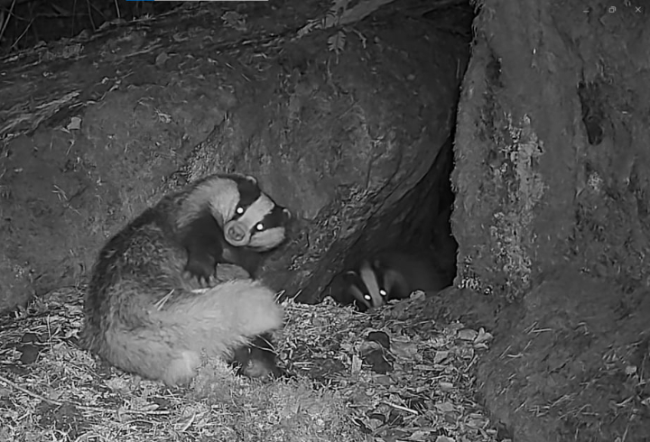 «У семейной парочки барсуков из Ленинградской области уже заметно округлились бока. Зверьки спешат натаскать к себе в нору побольше мягкой подстилки из мха и папоротника. Под утро парочка отправилась отдыхать. Глава семьи — сразу в нору, а барсучиха — как и положено даме — решила после напряженной ночной работы сначала привести себя в порядок, и занялась туалетом», — отметил специалист.