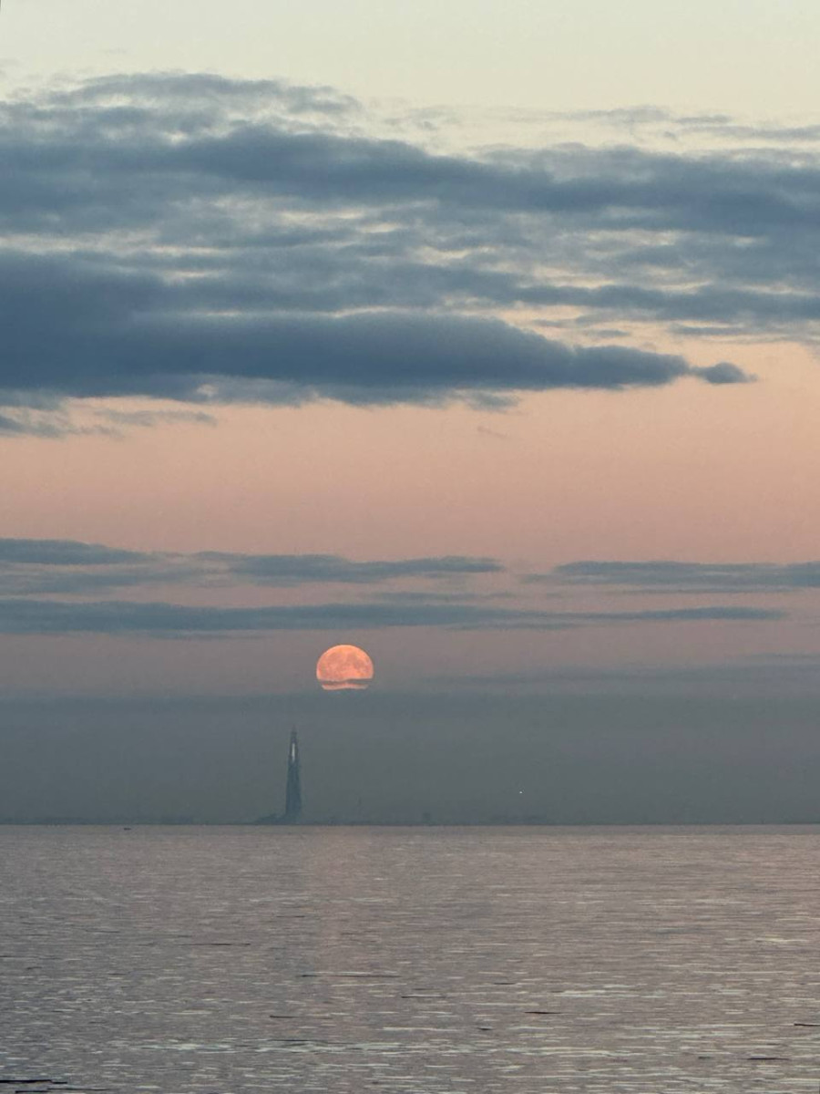 Поздно вечером 7 октября яркая луна-гигант появилась в небе над Петербургом. Завораживающими снимками делятся жители и гости Северной столицы.
