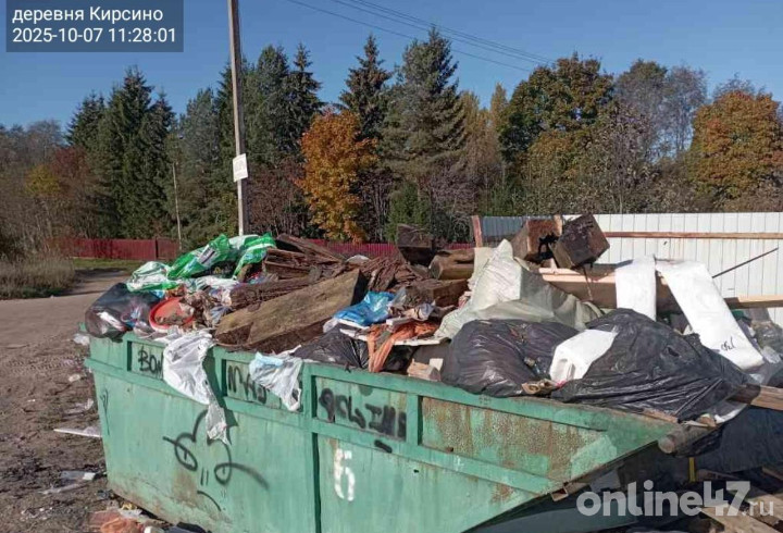 Как стало известно Online47, перевозчик регоператора, ответственный за вывоз отходов в Кирсино, утверждает, что проблема связана не с их работой. Мусор в деревне вывозился по графику, однако одна из контейнерных площадок оказалась завалена строительными отходами и поддонами, из-за чего технике было невозможно выполнить уборку.