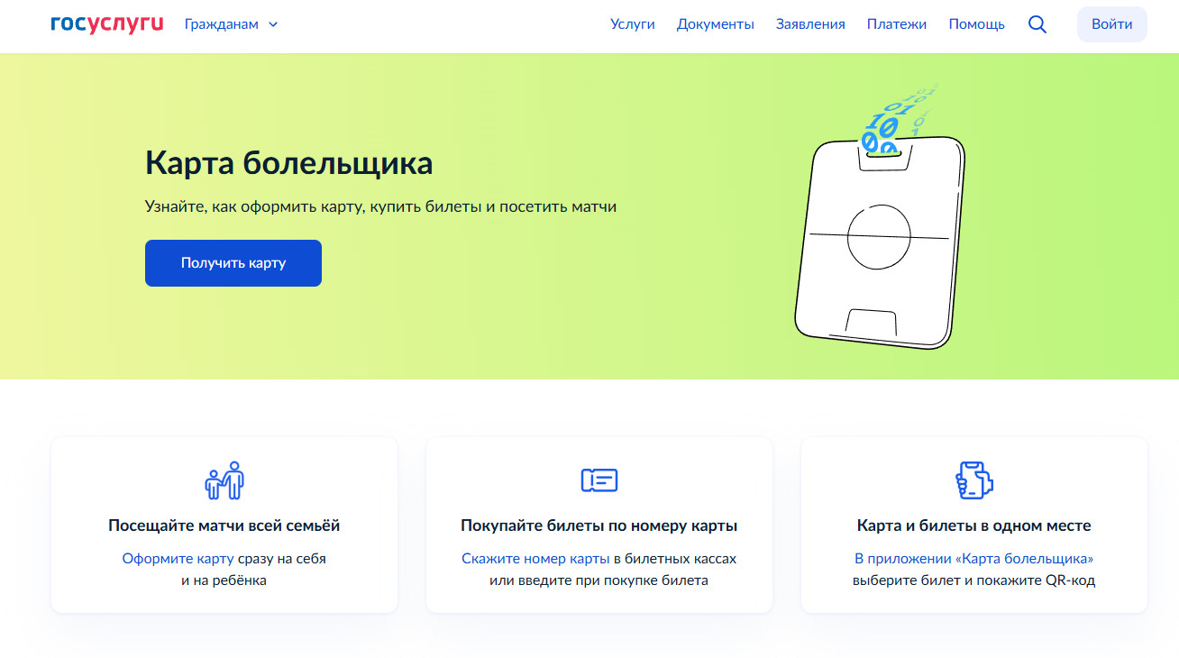 Получить карту болельщика можно несколькими способами — через портал «Госуслуги», в центрах МФЦ или в мобильном приложении.