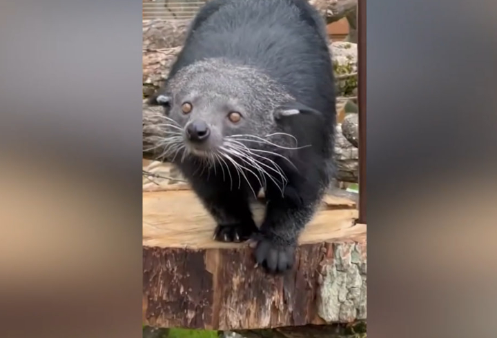 Сотрудница отдела «Хищные млекопитающие», зоолог Юлия Гилицкая, сняла на видео, как бинтуронг совершает грациозный прыжок. Данный ролик опубликовала пресс-служба Ленинградского зоопарка.