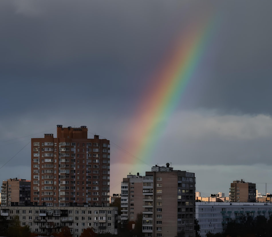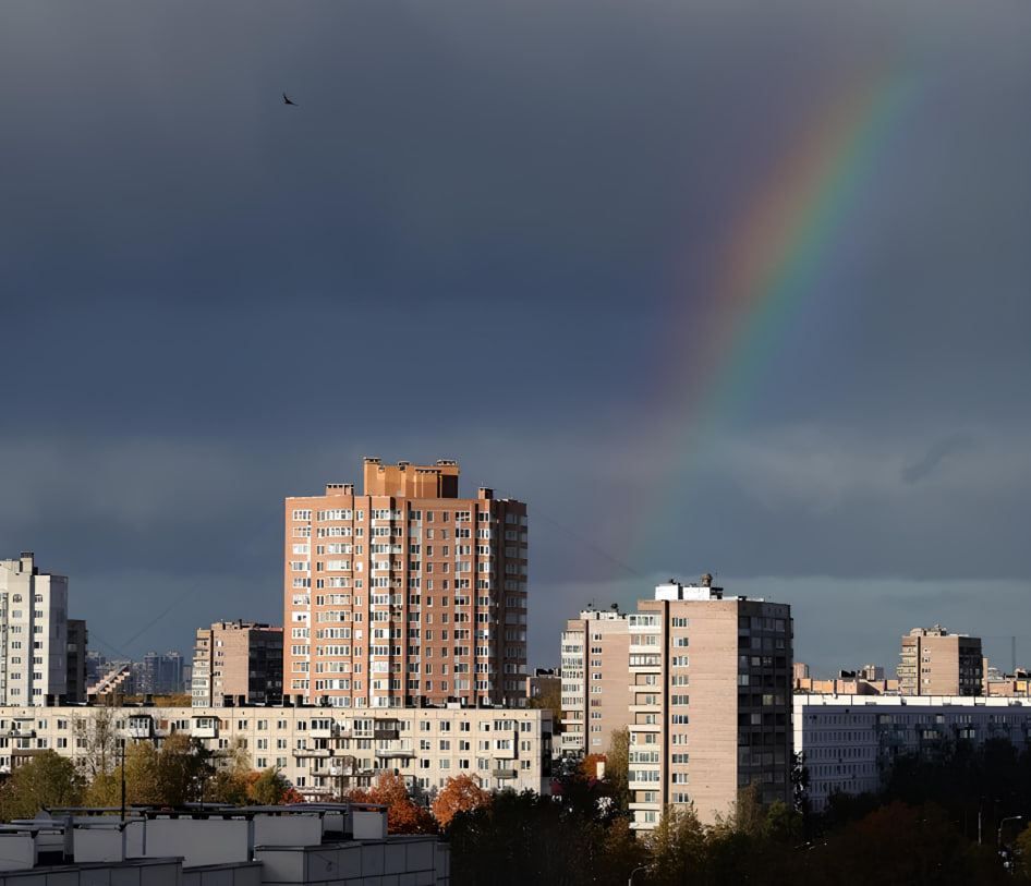 В субботу, 11 октября, Петербург оказался под влиянием тыловой части циклона с центром над Карелией. Погода соответствовала: облачно, с неустойчивыми прояснениями, кратковременные дожди и порывистый ветер. Но после непогоды жителей ждала награда – в небе начала появляться радуга, добавляя ярких красок в этот осенний день. В телеграм - канале АстроФотоБолото опубликовали кадры с этим природным явлением.
