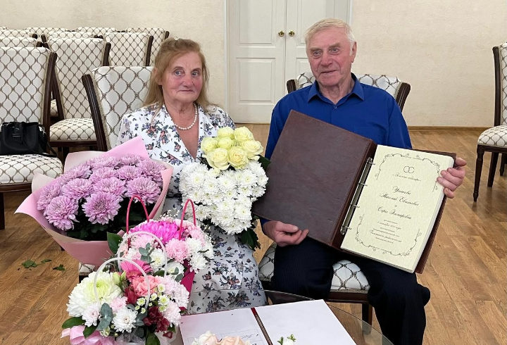 Накануне, 10 октября, в Гатчинском ЗАГСе юбилейную дату отпраздновали Николай Евгеньевич и Сирье Эльмаровна Ушаковы. Написали в пресс-службе администрации округа.
