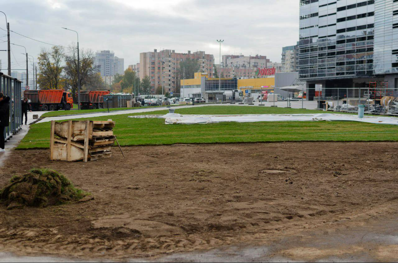 Кроме того, специалисты приступили к асфальтированию проездов между гипермаркетом О’кей и прилегающей к вестибюлю благоустроенной частью. Также частично уложен рулонный газон. Работы продолжаются.
