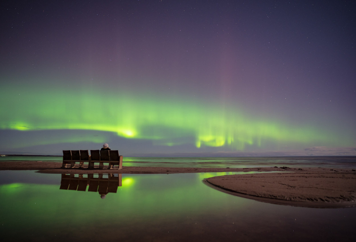 «Эта была дивная ночь на берегу Ладожского озера. Кто-то вытащил лавку из заброшенного детского лагеря прямо на берег, вода в озере ушла далеко от берега, обнажив дно и оставив живописные лужи. Невероятно ярко сияло небо, луна не смогла помешать насладиться зрелищем. Погода пока теплая, было почти безветренно», — написала Екатерина Стрельникова.