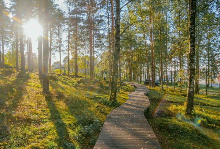 В поселке Петровское Приозерского района Ленинградской области создали новую экотропу. Она радует глаз не только днем, но и в вечернее время благодаря красивой подсветке. Опоры светильников напоминают стволы деревьев. Они гармонично вписываются в природный ландшафт, освещая все вокруг. Об этом рассказали в региональном комитете по строительству.