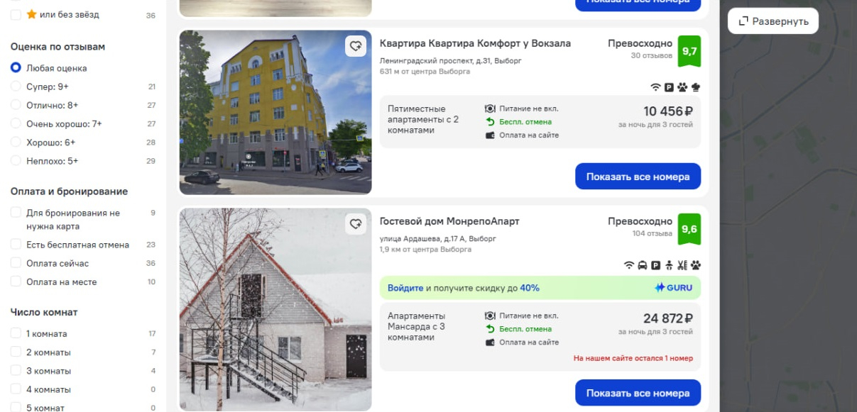 Сейчас бронь на новогодние праздники в Выборге уже открыта. Если рассматривать вариант ночевки со 2 на 3 января на семью из трех человек (двое взрослых и ребенок), то обойдется суточное размещение: