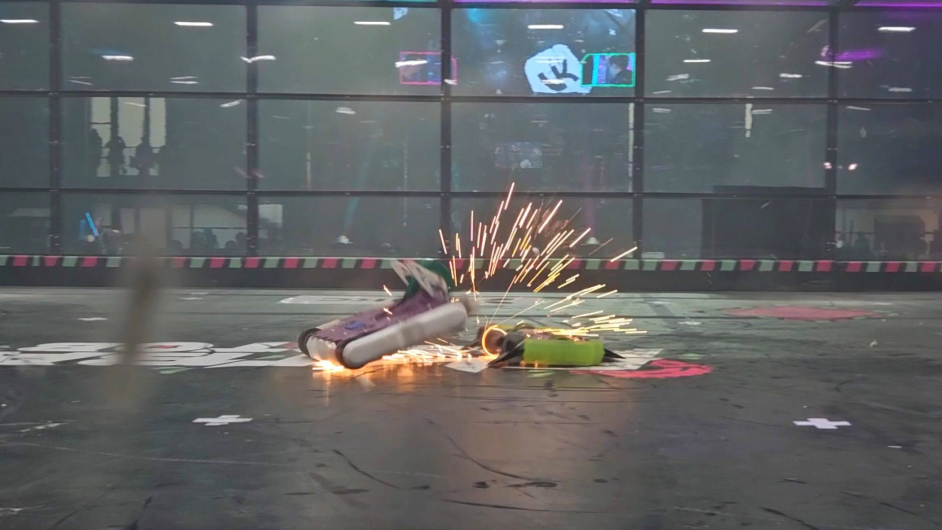 В результате серии ударов от робота DS ROBOTICS (Индия) у красноярской команды «Резолюция» перегрелся и загорелся контроллер. Служба безопасности оперативно потушила возгорание, не допустив его распространения.