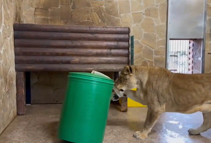 Сегодня, 23 октября, у львицы Таисии из Ленинградского зоопарка — большой праздник. Величественной обитательнице саванны исполняется 14 лет. В честь этого события смотрители преподнесли имениннице необычный сюрприз — гигантскую бочку. Для азартной игры подарок закрепили на прочной резинке в старом пожарном рукаве — такую идею предложили сотрудники отдела «Хищные млекопитающие». Об этом сообщили в телеграм-канале зоопарка.