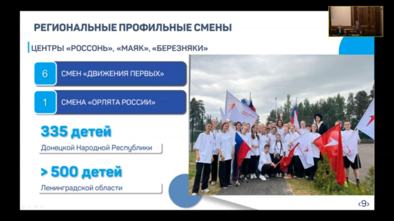 «В организациях отдыха были проведены тематические смены, в том числе по финансовой грамотности, профориентации, безопасности дорожного движения, а также 82 смены «Движения первых» и 150 смен программы «Орлята России». Региональными площадками для этих смен стали центры «Россонь», «Маяк» и «Березняки», где проведено 7 смен. Детский отдых еще продолжается, мы готовимся принять еще 3 тысячи детей на отдых в осенние каникулы».