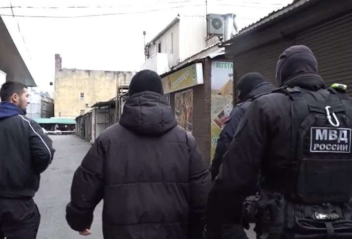 На этой неделе в Петербурге полиция провела миграционный рейд на Сенном рынке. В нем приняли участие различные подразделения, в том числе спецполк, миграционная служба и кинологи.