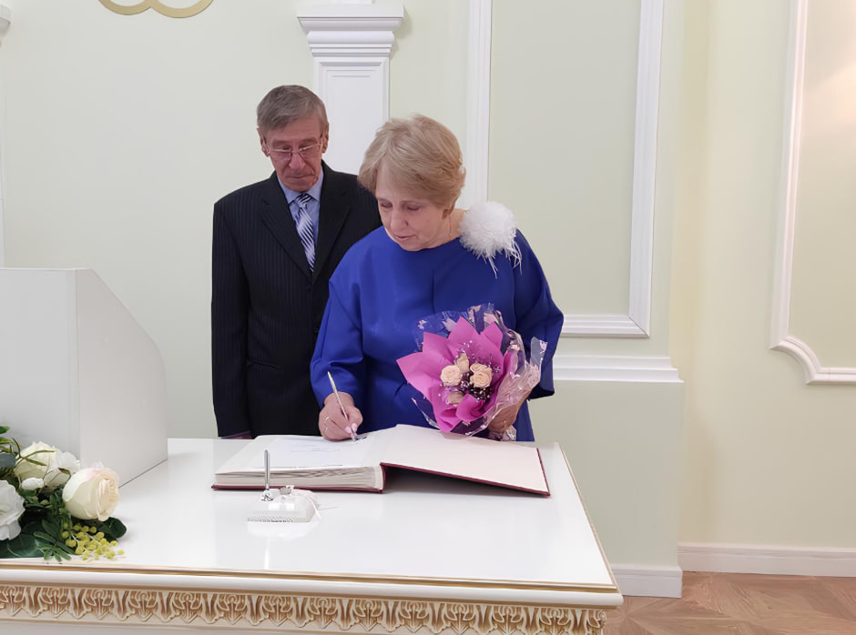 «Вновь для пары прозвучал свадебный марш, а любящие дети и внучка порадовали своими добрыми пожеланиями! Супруги с удовольствием поделились историей знакомства, рассказом о свадьбе и дали мудрые советы молодому поколению! От души поздравляем супругов с прекрасной годовщиной свадьбы!» — говорится в сообщении.