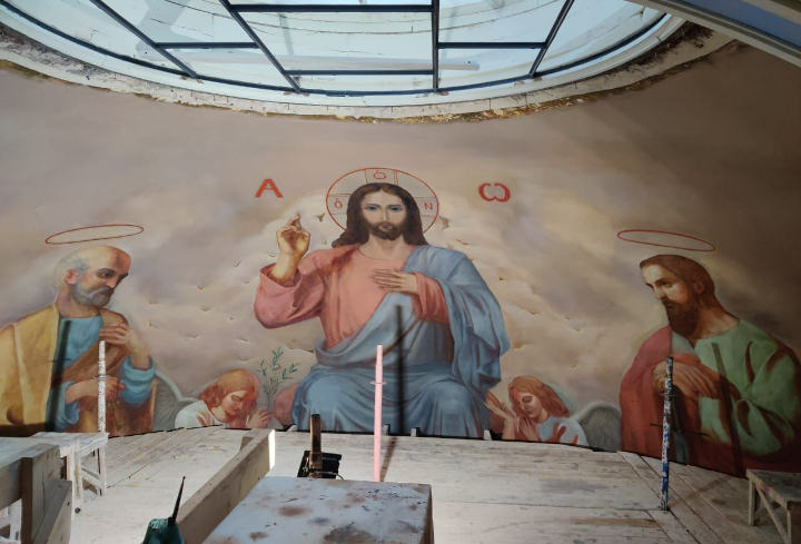 По его словам, на текущем этапе реставраторы почти завершили важный этап работ — восстановление живописи в алтарной апсиде.