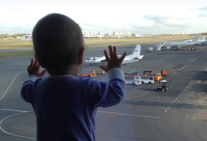 Малышку запечатлела ее мама – Татьяна Громова. На фотографии ребенок стоит в аэропорту перед окном и смотрит на самолет.