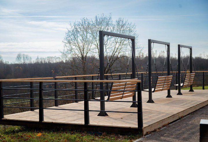 Здесь появились уютные обзорные площадки с городскими качелями, скамейками и шезлонгами, оборудована современная детская площадка и установлены столы для настольного тенниса. Для прогулок обустроили пешеходную тропу и специальный маршрут вдоль склона.