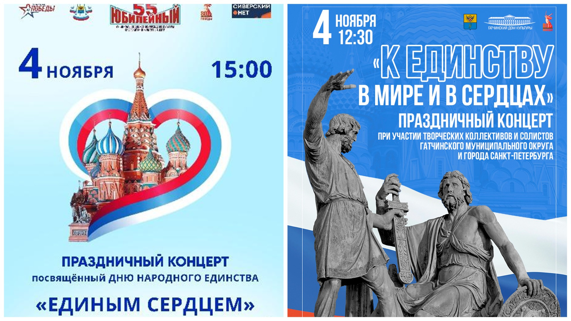 Чуть позднее в кино-культурном центре «Юбилейный» поселка Сиверский в 15:00 начнется другой праздничный концерт с названием «Единым сердцем». На нем выступят творческие коллективы и исполнители СККЦ «Юбилейный». Гостям покажут яркие концертные номера и подарят незабываемую атмосферу праздника. Как указывают организаторы, они ждут всех от мала до велика, прийти можно всей семьей и прихватить друзей.