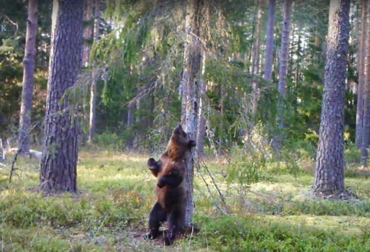 Напомним, что медведи активно трутся о деревья осенью по нескольким ключевым причинам. Во-первых, чтобы пометить территорию. Они оставляют на коре запах из желез, расположенных на спине и шее. Это сигнал другим медведям о своем присутствии и праве на территорию, особенно перед зимовкой. Во-вторых, это помогает снять зуд от линьки и избавиться от докучливых паразитов. В третьих - уход за шерстью. Кора дерева работает как щетка, помогая распутать и очистить густой осенний мех.