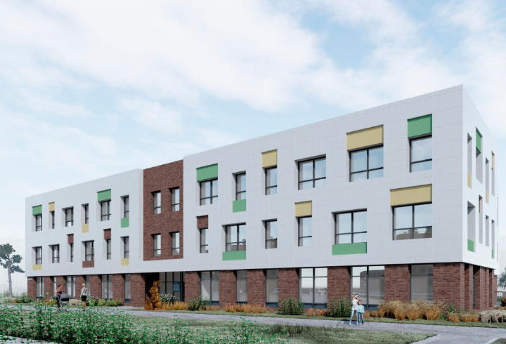 Внутри трехэтажного здания разместятся 9 групп для детей разных возрастов, включая подготовительную группу для будущих первоклассников. Также будут предусмотрены музыкальный и спортивный залы, медицинский блок и современный пищеблок.