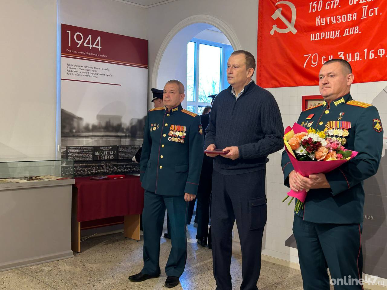 «Мы всегда говорим, что наши герои бессмертны, пока мы о них помним. И хочу вернуться к 80-летию Победы. Война закончилась 80 лет назад, такая же страшная, тяжелая война, но мы помним всех наших героев и чтим их. Вот я перед началом встречи подошел к стендам и посмотрел, здесь два десятка названий поселков и городов Выборгского района.».