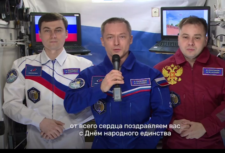 «От всего сердца поздравляем вас с Днем народного единства с борта Международной Космической Станции. Это праздник тех, кто искренне любит нашу Родину, чтит ее великую историю и активно трудится на благо России, кто готов стать на защиту своей страны», — подчеркнул герой России, космонавт «Роскосмоса» Сергей Рыжиков.