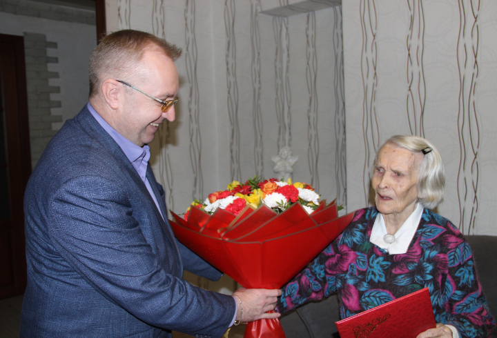 Первый заместитель главы администрации Лодейнопольского района Сергей Тарелкин навестил Александру Михайловну и пожелал юбилярше крепкого здоровья и тепла близких.