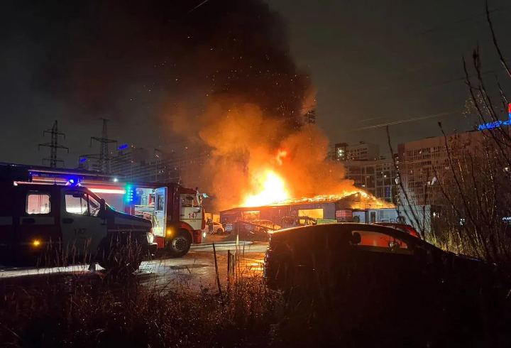 Сегодня, 8 ноября, в Мурино произошел пожар на проспекте Авиаторов Балтики. Как сообщает пресс-служба ГКУ «Леноблпожспас», огнем был полностью уничтожен одноэтажный ангар автосервиса площадью 150 квадратных метров. Также сгорела примыкавшая к нему металлическая бытовка.