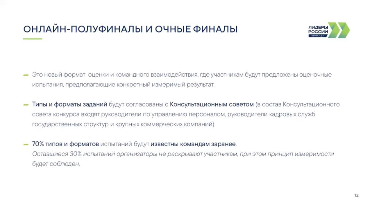 В свою очередь председатель экспертного совета конкурса «Лидеры России» Павел Безручко напомнил о традиционном тестовом формате, состав которого и база вопросов обновляется ежегодно. Но в этот раз в зачет пойдёт средний результат команды, а не индивидуальный счет.