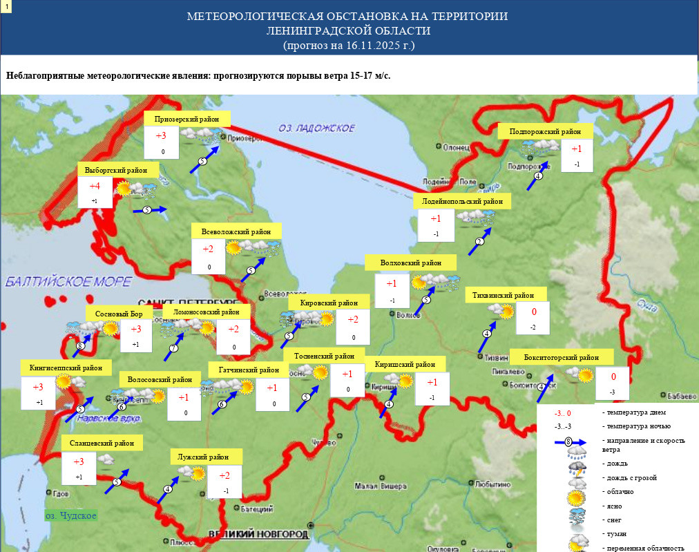 Температура воздуха на территории Ленинградской области опустится до -7 градусов в ночь на 16 ноября, сообщили в пресс-службе регионального Главка МЧС России.