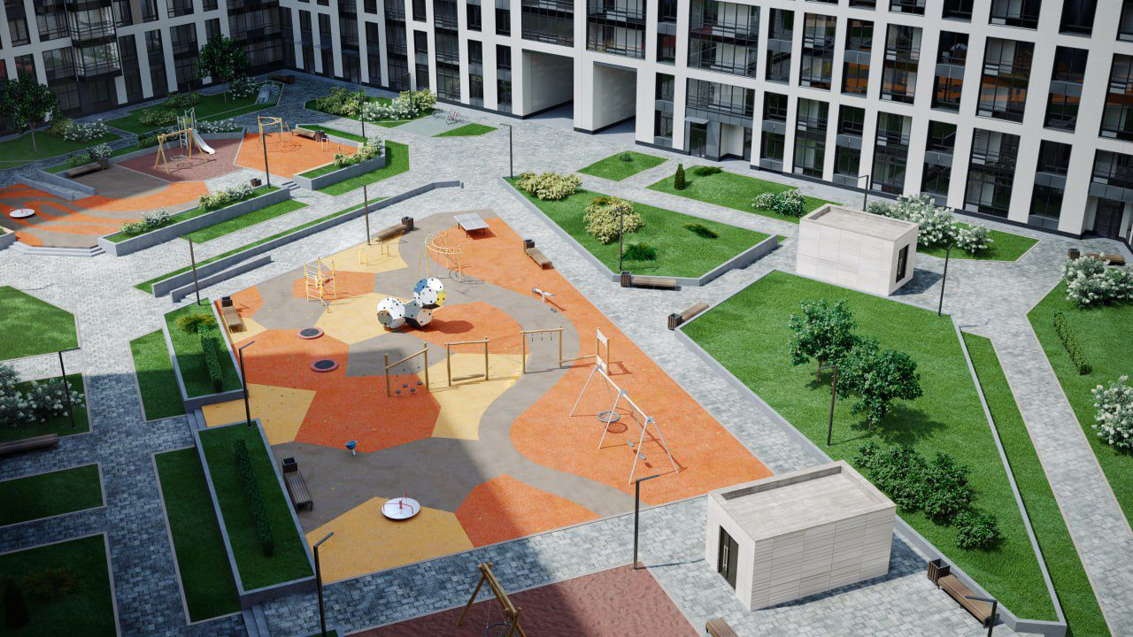 Что касается инфраструктуры, в составе проекта школа и детский сад с бассейном. На первых этажах размещаются коммерческие помещения — кафе, сервисы и магазины, а весь окружающий район уже располагает необходимыми услугами, включая аптеки, банки, фитнес-центры и торговые точки.
