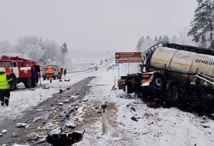 По данным госкомитета Карелии по безопасности, инцидент произошел на 179-м километре трассы. Контейнеровоз поднимался по склону дороги и потерял управление, из-за чего столкнулся со встречным бензовозом. Вслед за ними в столкновение попали две легковушки.