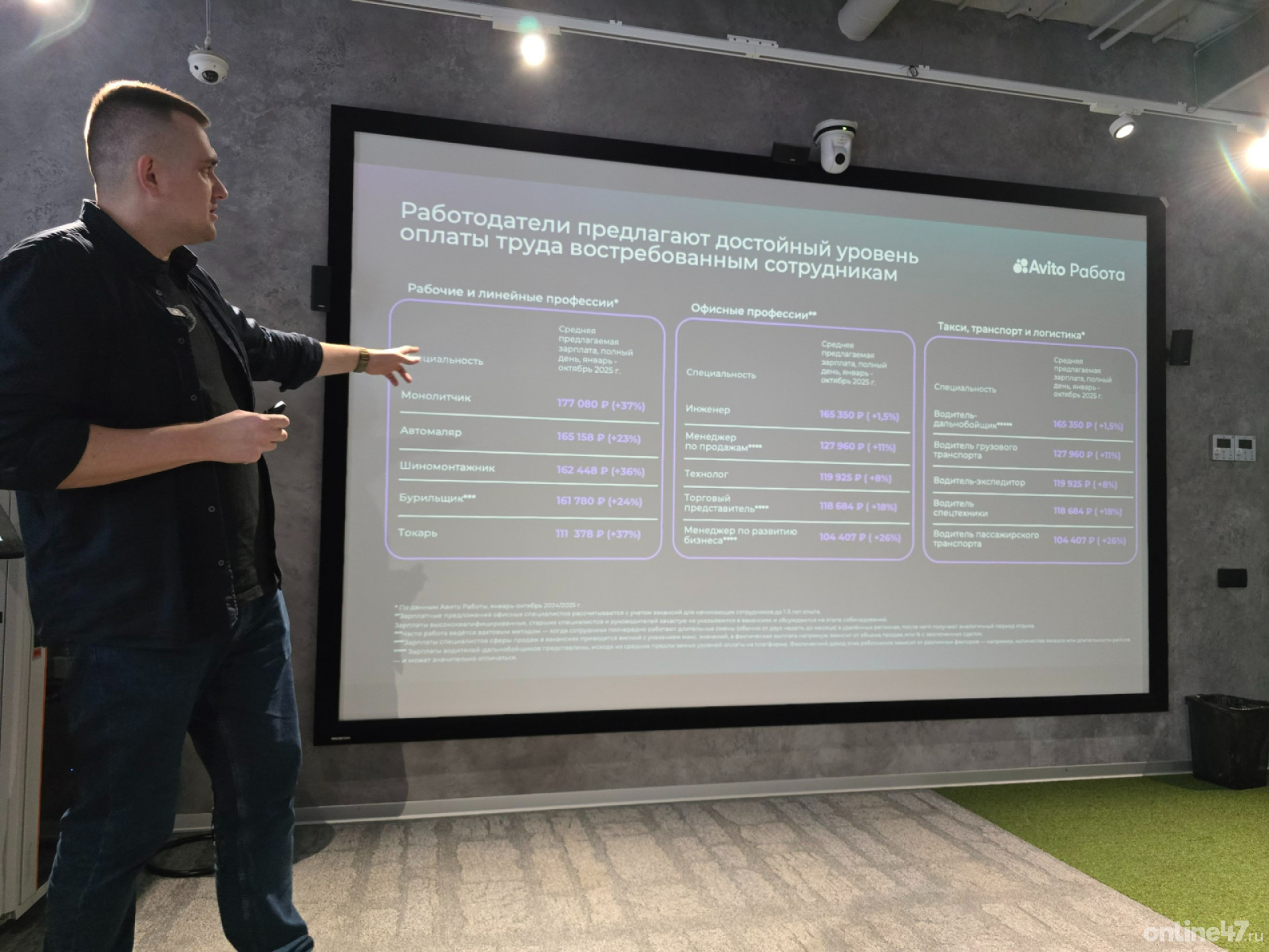 Среднее зарплатное предложение в Северной столице за период с января по октябрь 2025 года достигло 83 667 рублей. Увеличение зарплатных предложений проявляется в различных сегментах рынка. Спикер выделил три группы востребованных сотрудников и привел топ‑5 профессий с динамикой год к году.