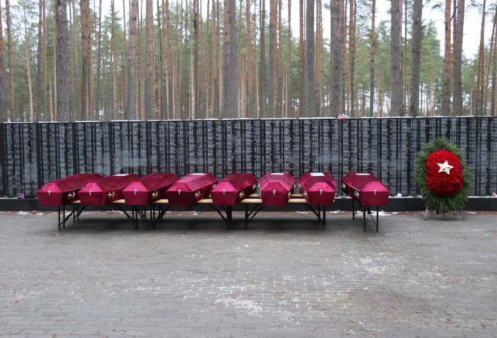В Кировском районе Ленинградской области состоялась торжественно-траурная церемония перезахоронения останков 90 бойцов Красной Армии.
