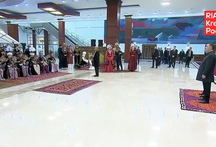 Во время прибытия президента России Владимира Путина в Киргизию киргизские артисты устроили для него музыкальную встречу. Российский лидер прилетел во вторник с трёхдневным визитом, и у трапа его встретил президент республики Садыр Жапаров.