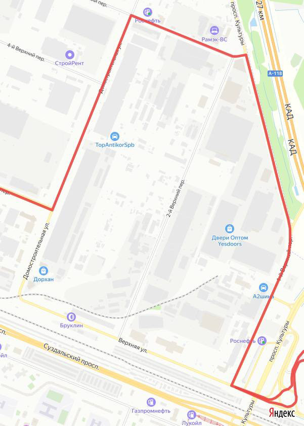 В прямом направлении: стандартная трасса → ул. Верхняя → 1-й Верхний переулок → проспект Культуры → Домостроительная ул. → 3-й Верхний переулок → возвращение на свою трассу.