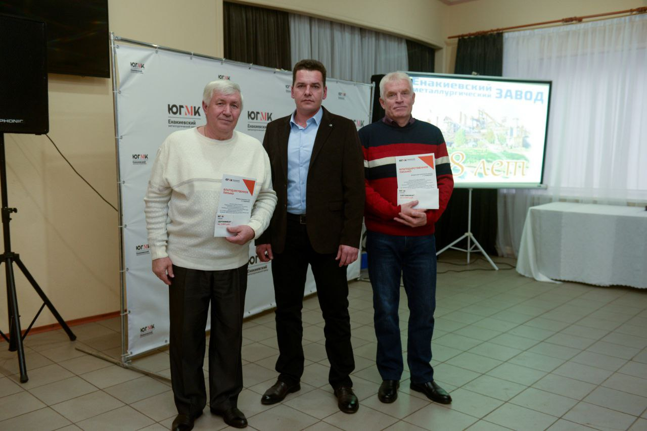 В этом году свой юбилей отметили две сотрудницы завода — Наталья Левчишина, грануляторщик доменного шлака, которой исполнилось 65 лет, и Александра Ершова, специалист службы организации питания, отметившая 60-летие. Поздравления также получили братья Могилевы.