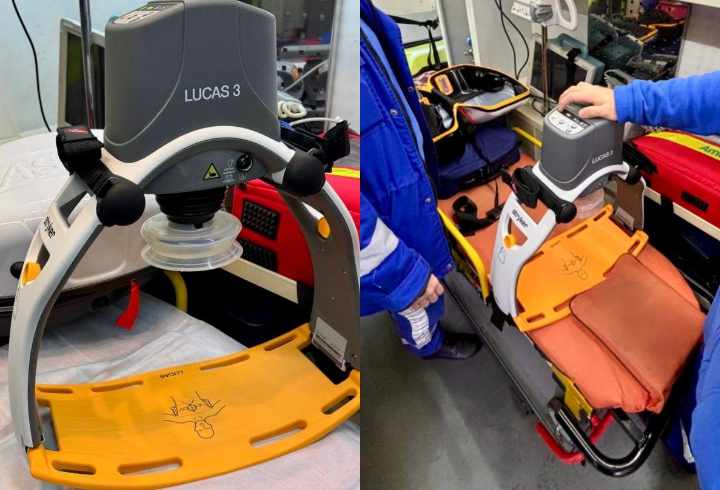 Силы медиков при такой работе истощаются очень быстро. Аппарат Lucas берет на себя проведение непрямого массажа сердца, что позволяет медикам сконцентрироваться на других важных задачах — введении препаратов, проведении искусственной вентиляции легких и дефибрилляции.