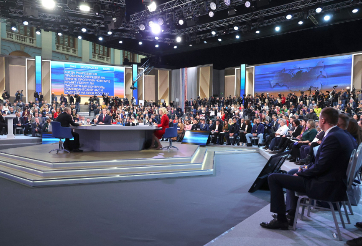 Программа объединит в себе прямую линию и большую пресс-конференцию президента РФ. Задать вопросы президенту страны можно будет через сайт, СМС- или ММС-сообщения на номер 0–40–40 и по телефону 8–800–200–40–40.