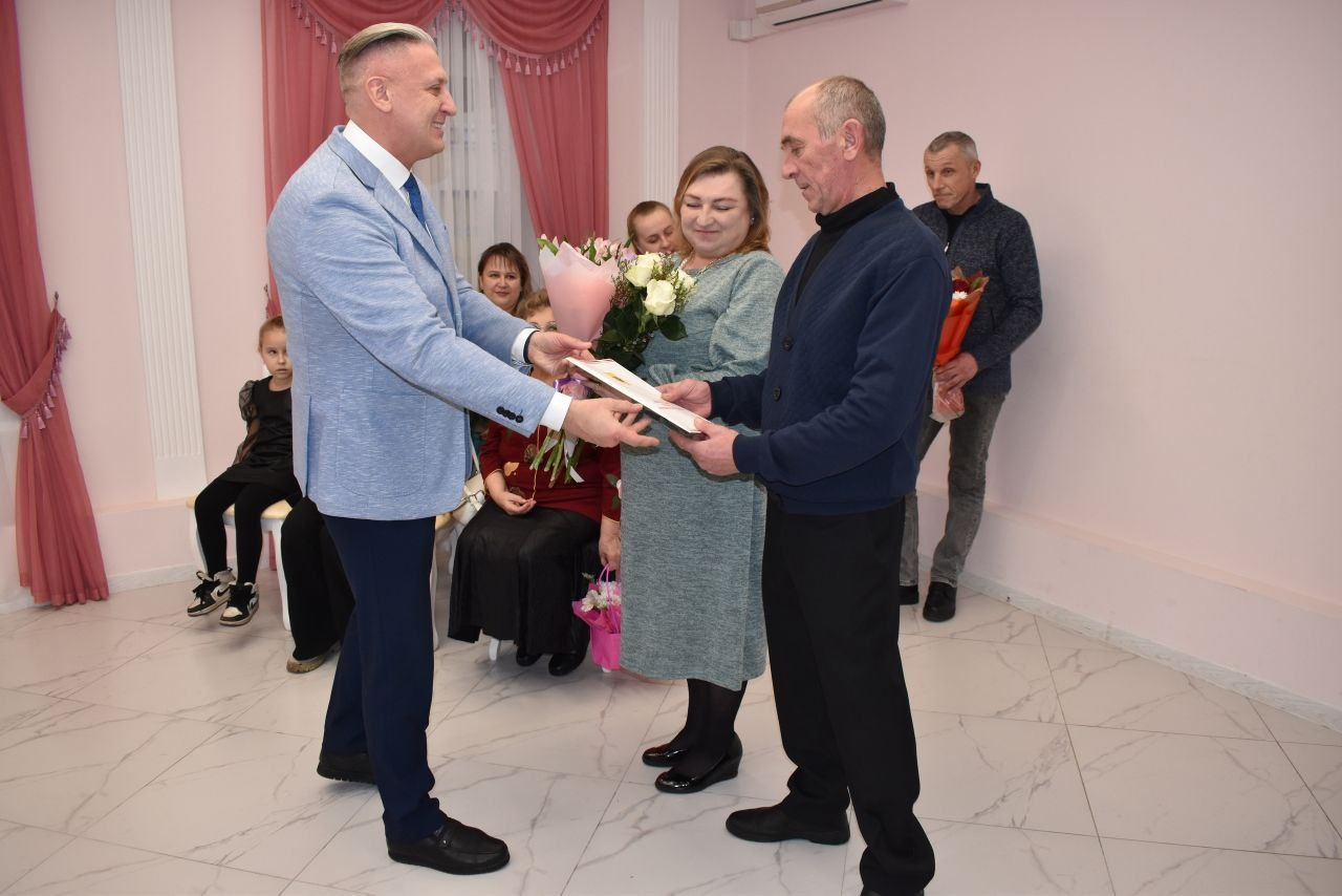 Юбилярам вручили поздравительный адрес и цветы. Их супругов внесены в Книгу Свадебных Юбилеев отдела ЗАГС администрации Лужского муниципального района.