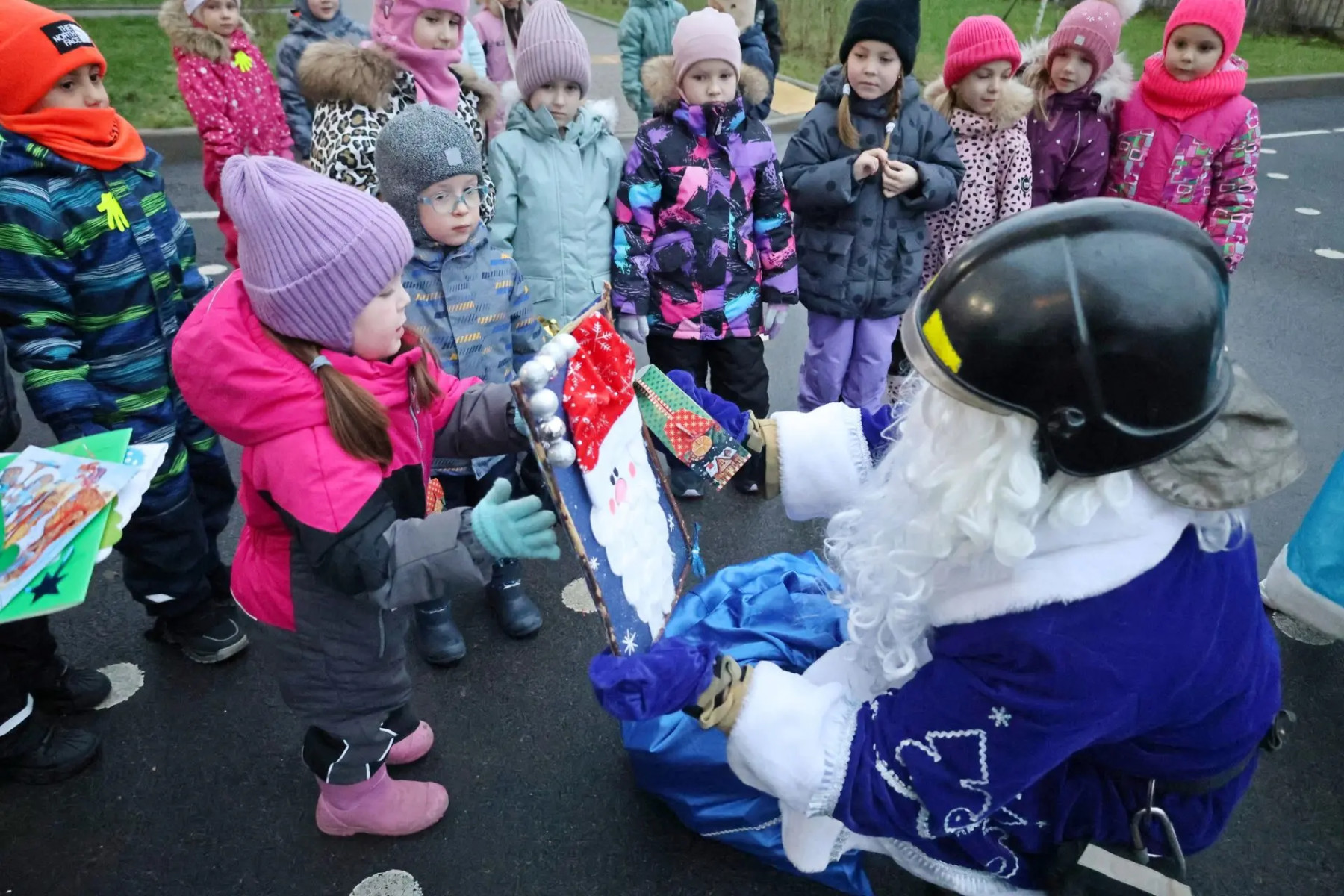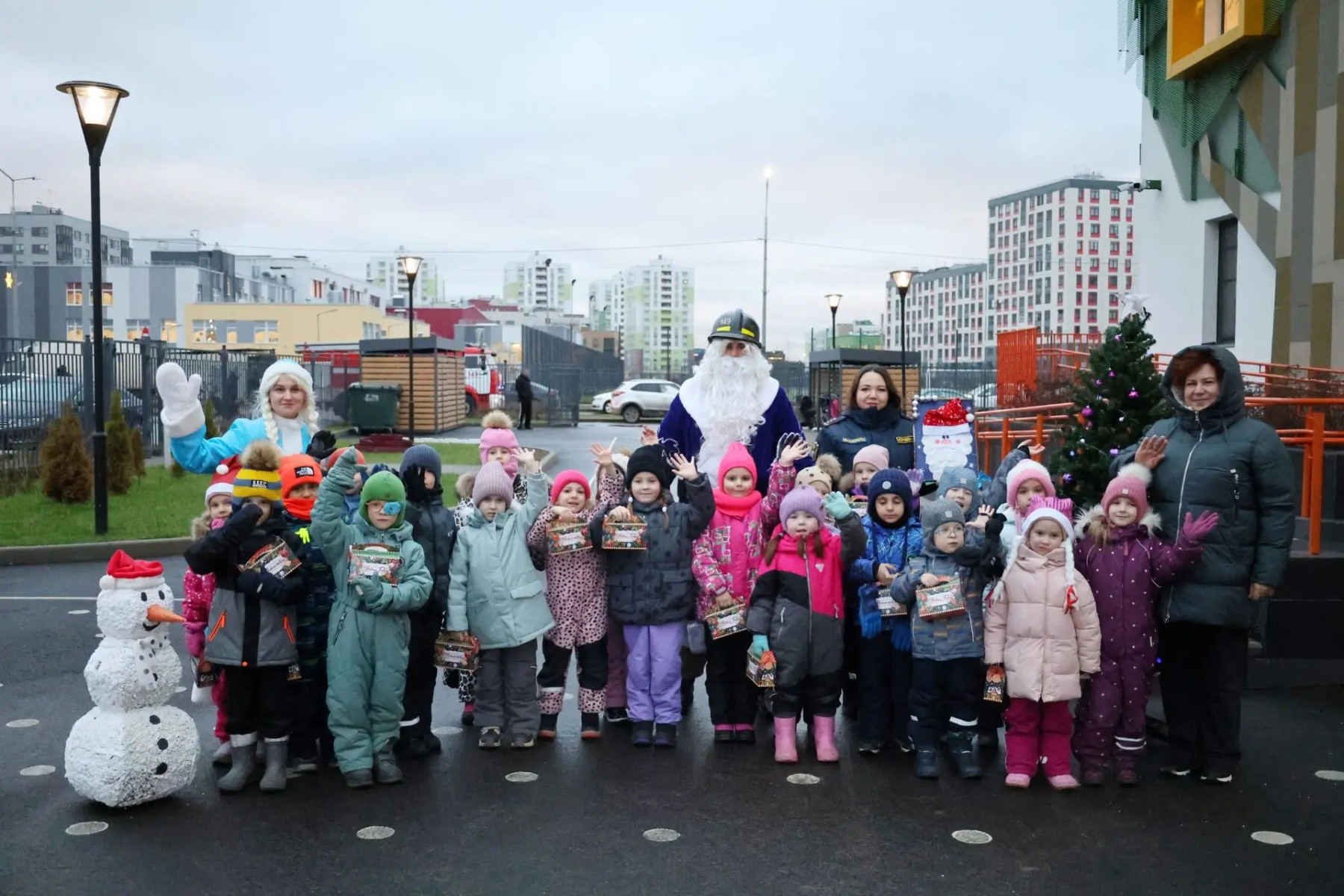 Гость прибыл не только с мешком подарков, но и с важной миссией — в игровой форме напомнить детям о правилах пожарной безопасности в период новогодних праздников. Ребята активно отвечали на вопросы о том, какие украшения можно размещать на ёлке, что делать при возгорании и по какому номеру следует звонить в экстренной ситуации. За правильные ответы и стихи дети получили сладкие подарки.