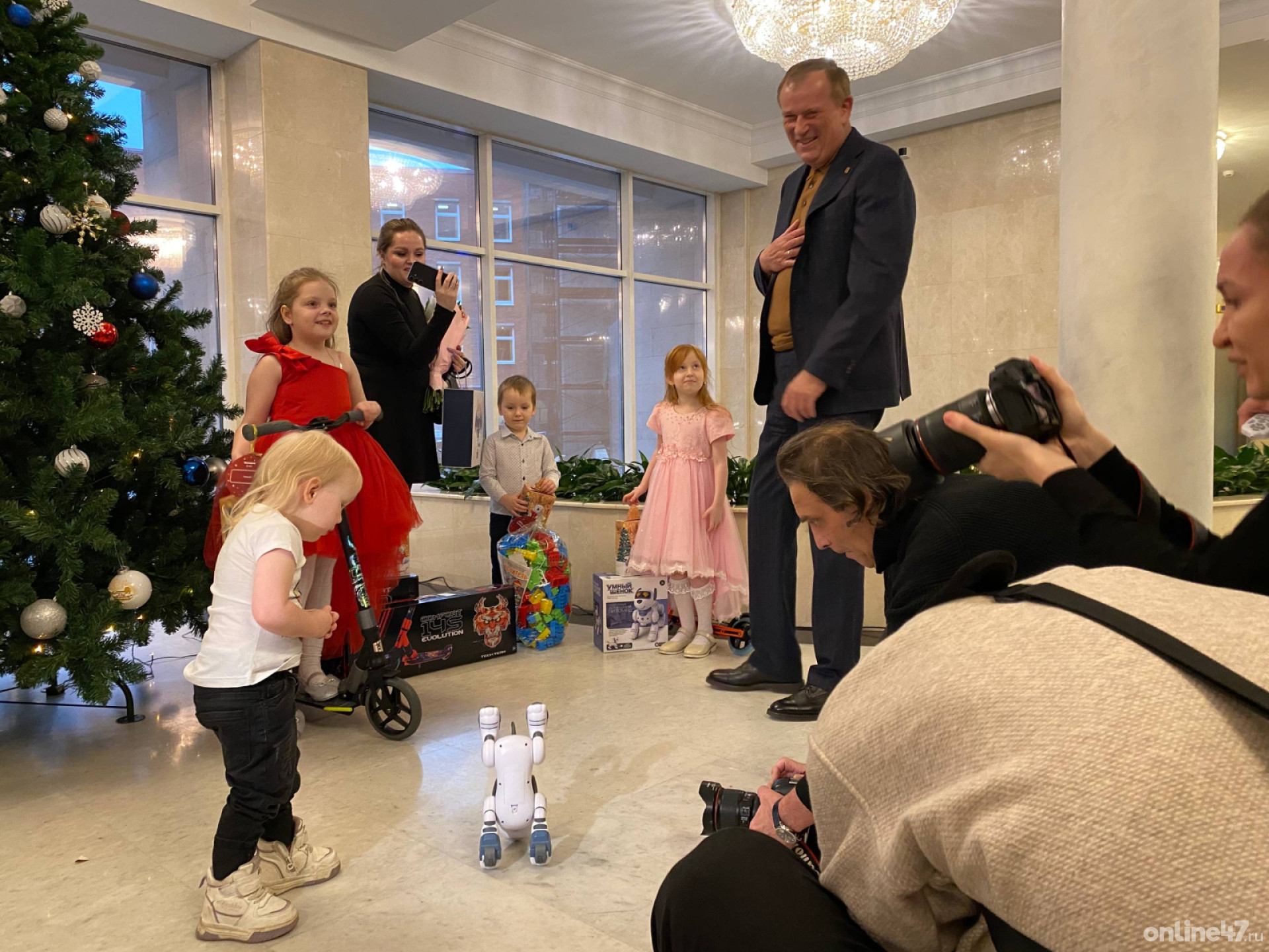 Сегодня, 22 декабря, в холле администрации Ленинградской области проходит особенная предновогодняя встреча. Губернатор Александр Дрозденко в рамках акции «Елка желаний» вручил подарки семьям военнослужащих – участников СВО.