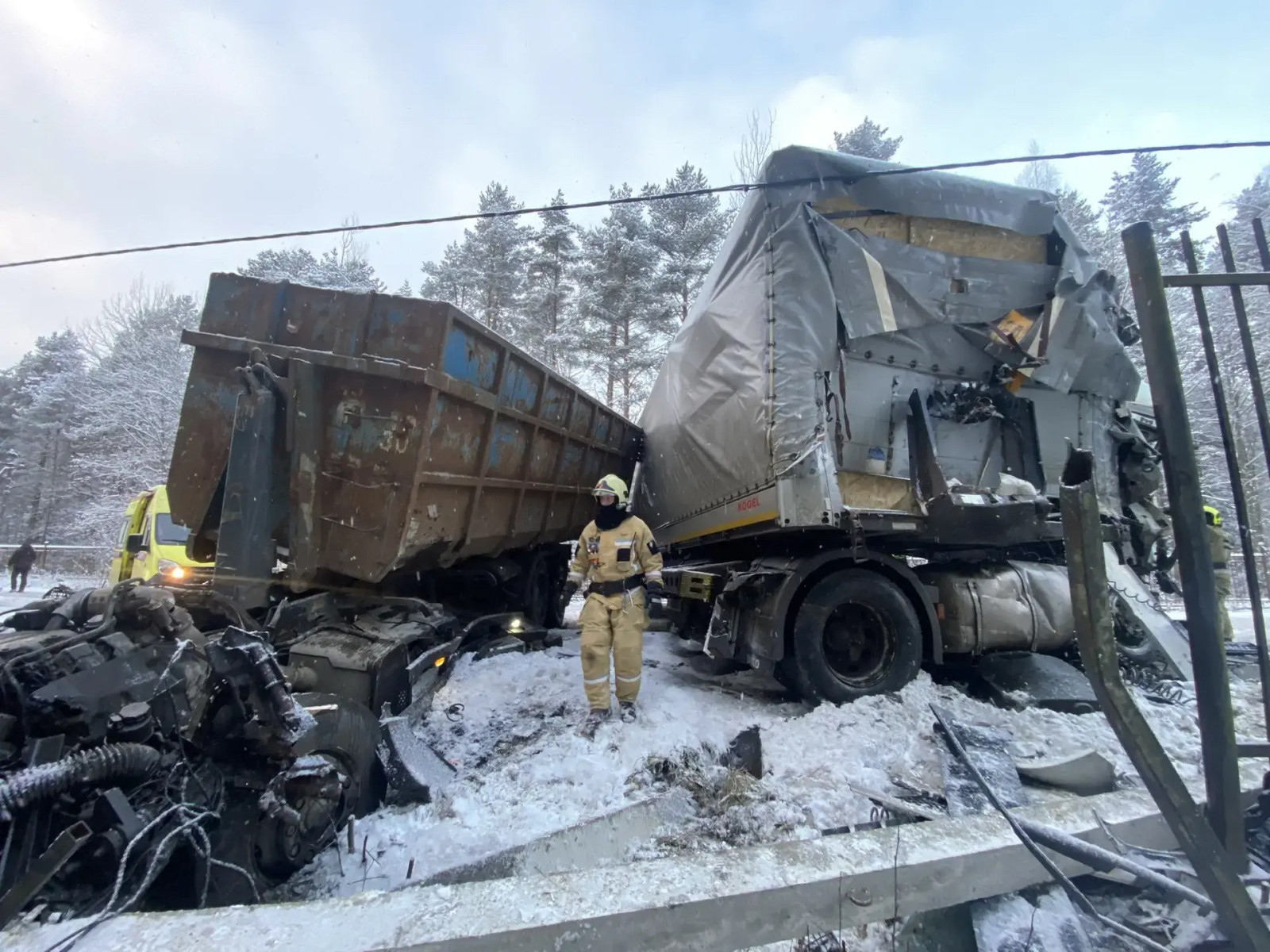 Водитель «Ивеко» получил тяжелые травмы и был госпитализирован в Центральную районную больницу города Токсово. Водителя грузового автомобиля «Мерседес» пришлось деблокировать — спасательные работы провел личный состав 147-й пожарной части Всеволожского отряда Леноблпожспас.