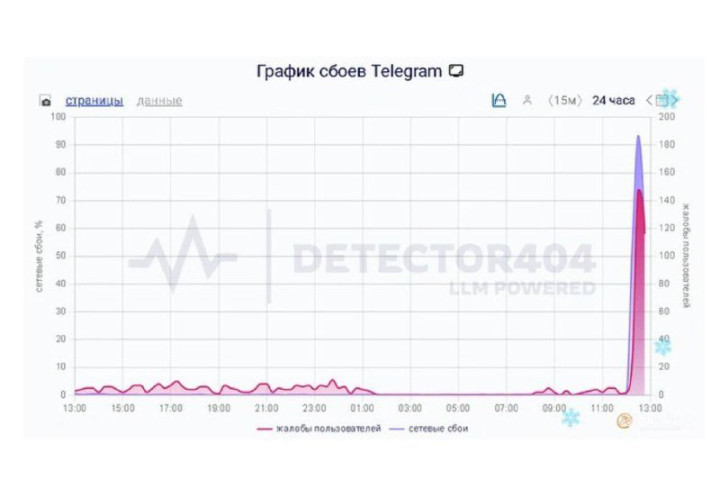 По данным портала Downdetector, к половине первого часа дня количество жалоб резко скакнуло почти до полутора сотен. Жалуются как на неработающее приложение, так и на проблемы с доступом к сайту и вэб-версии мессенджера.