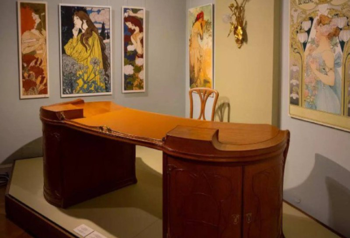 Среди крупнейших экспонатов представлены шпалера "Поклонение волхвов" работы Уильяма Морриса, стол с мозаичной столешницей «Флора Лотарингии» Эмиля Галле, а также письменный стол бельгийского архитектора и художника Анри ван де Вельде.