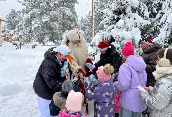 По сюжету «Ледяной сказки» сказочные герои вовлекли юных зрителей в волшебное приключение. Украшенная гирляндами ёлка создавала праздничную атмосферу. В завершение программы все дети получили сладкие подарки от Деда Мороза.
