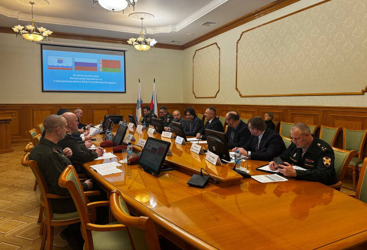 В обсуждении приняли участие вице-губернатор Владимир Цой, представители органов молодежной политики и патриотических организаций региона. Белорусскую сторону представляла делегация во главе с заместителем командующего внутренними войсками МВД Республики Беларусь, полковником Дмитрием Микшей.