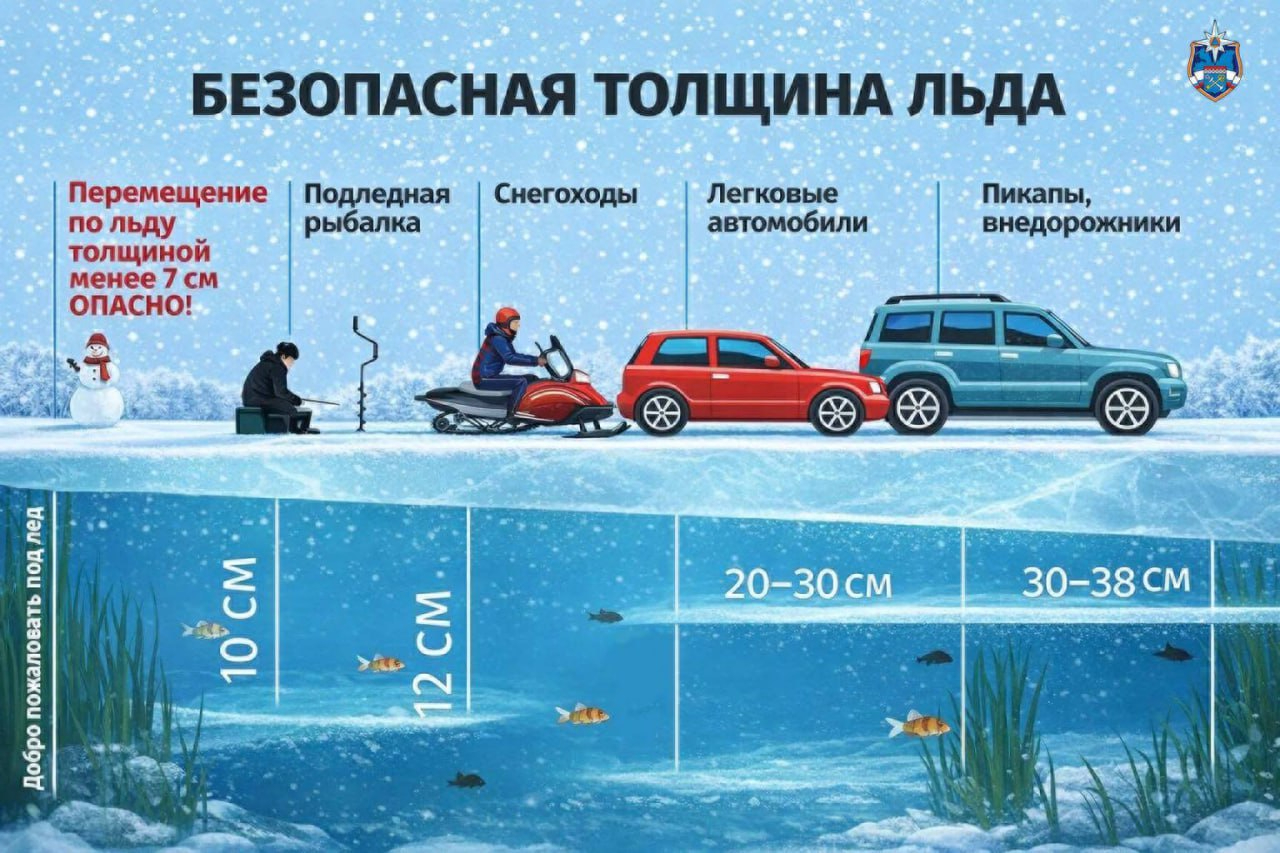 В Аварийно-спасательной службе Ленинградской области напомнили о правилах безопасного выхода на лед. Для одного пешехода необходим лед толщиной от 7 сантиметров. Если двигается группа людей или лыжники, безопасная толщина увеличивается до 12 см. Для проезда автомобиля по льду его слой должен составлять не менее 20-30 сантиметров. Безопасность на льду зависит от погоды и постоянной проверки его толщины по маршруту.