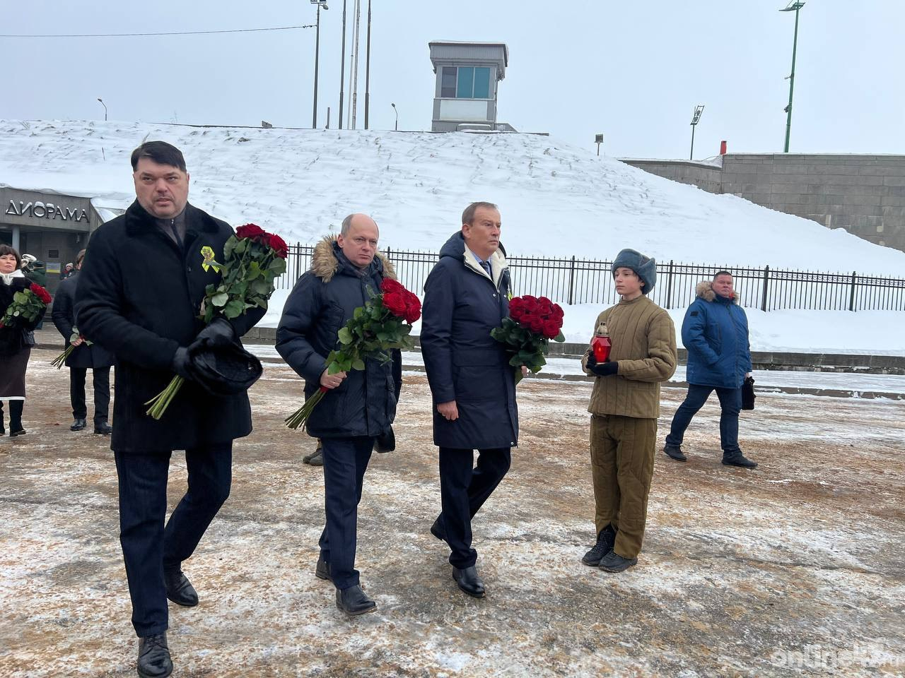 Затем Александр Дрозденко, Сергей Бебенин, Дмитрий Василенко и другие участники торжественного мероприятия возложили цветы в память о героях, прорвавших блокаду Ленинграда.