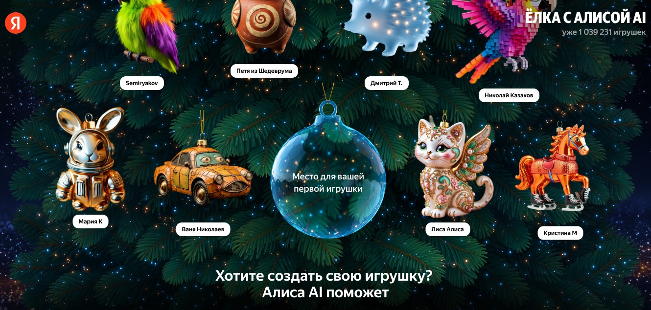 В декабре Яндекс запустил специальную новогоднюю инициативу — цифровую елку на главной странице сервиса. За время акции пользователи разместили на виртуальной елке 19,5 миллиона игрушек.