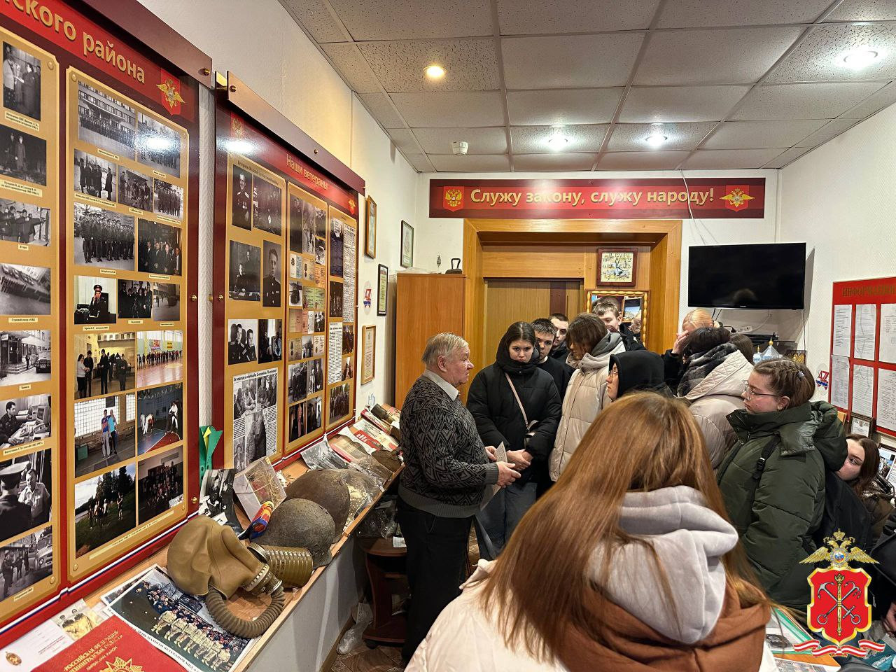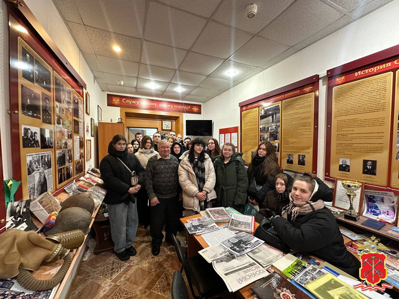 В Тосненском районе студентам нескольких учебных заведений, обучающимся по правоохранительным специальностям, организовали экскурсию в музей полиции при ОМВД России по Тосненскому району. Экскурсию провел председатель Совета ветеранов ОМВД России Александр Шахманов. Он рассказал об истории создания полиции и подвигах сотрудников, обеспечивавших безопасность граждан. Особое внимание уделили участникам Великой Отечественной войны, которые после ее окончания продолжили службу в системе МВД.