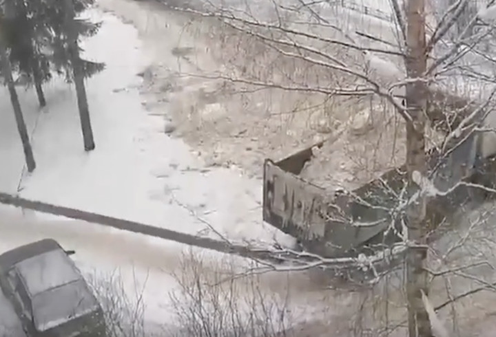 Женщина решила запечатлеть из окна своей квартиры процесс уборки снега с применением спецтехники. В объектив камеры попал эпизод, когда самосвал, двигаясь задним ходом, врезался в фонарный столб. От сильного удара опора не устояла и рухнула на стоявшую в нескольких метрах иномарку, пробив ей крышу и лобовое стекло.